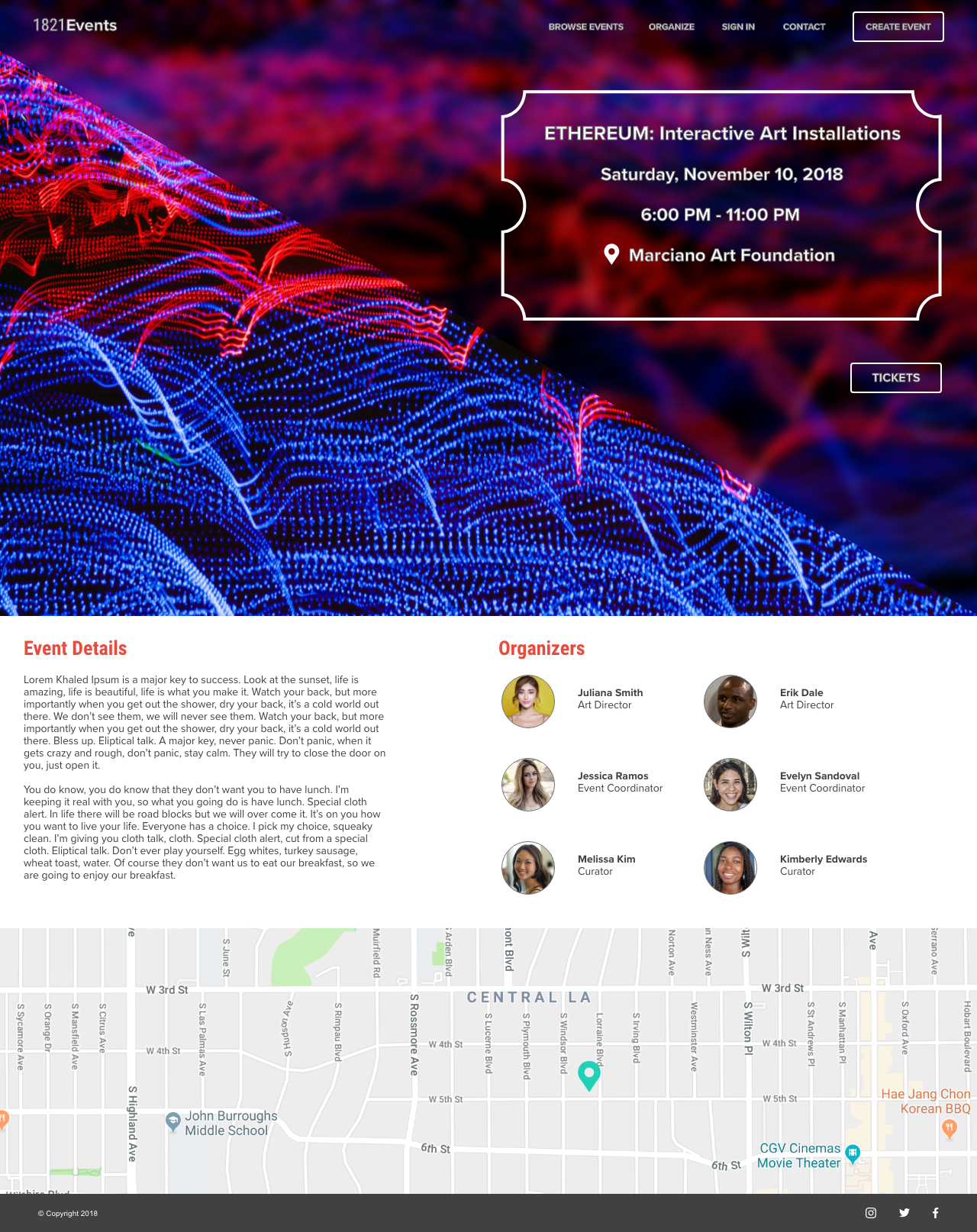 Design and prototype a web page for an event. Design a web page for an event. Display the date, location, content and a clear call to action to register.