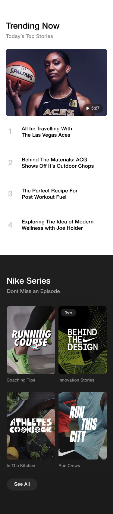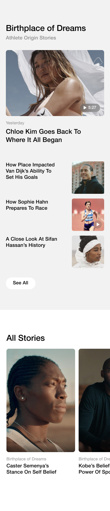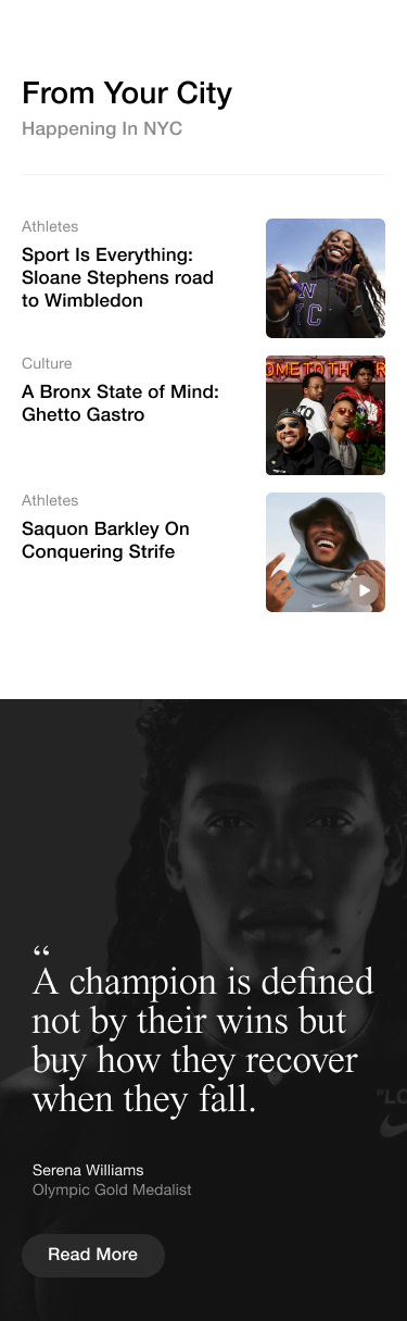 The Nike Content Experience is work that revolved around integrating Editorial content throughout the Nike ecosystem.